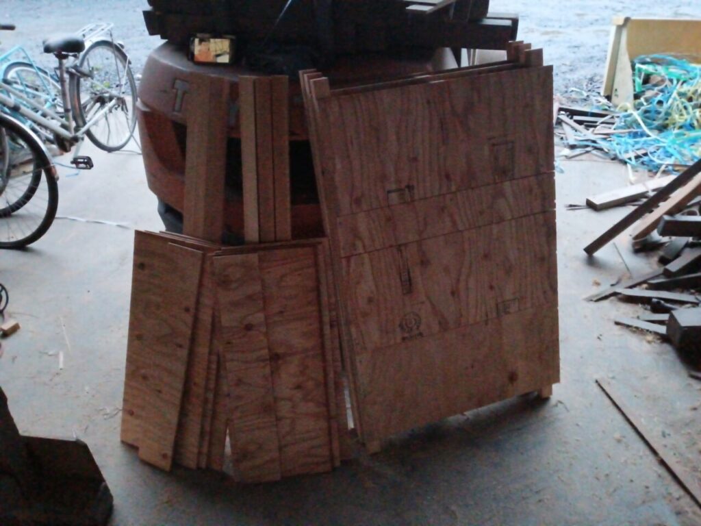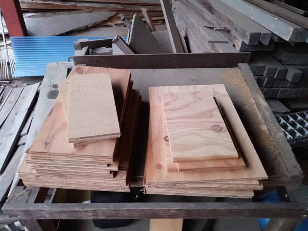 それと、端材のベニヤ。30cm×20cmくらいが1番大きいかな?の端材が有りますが、欲しい方いるかな?直角になっていないので、カットして使われる方なら良いかな?