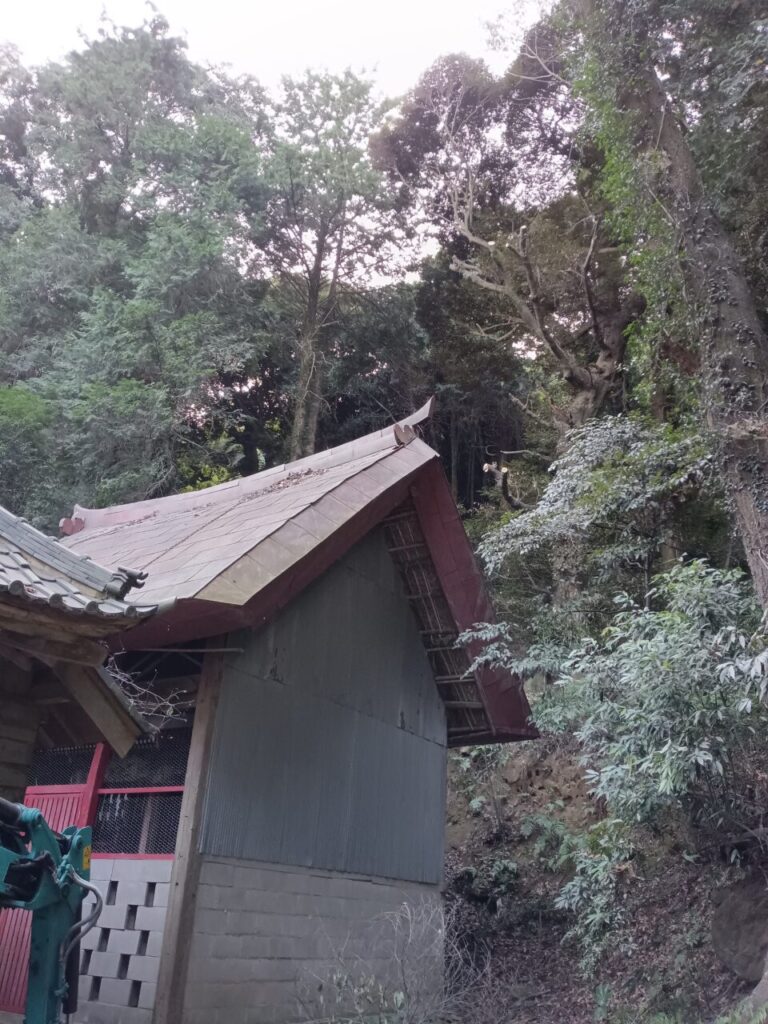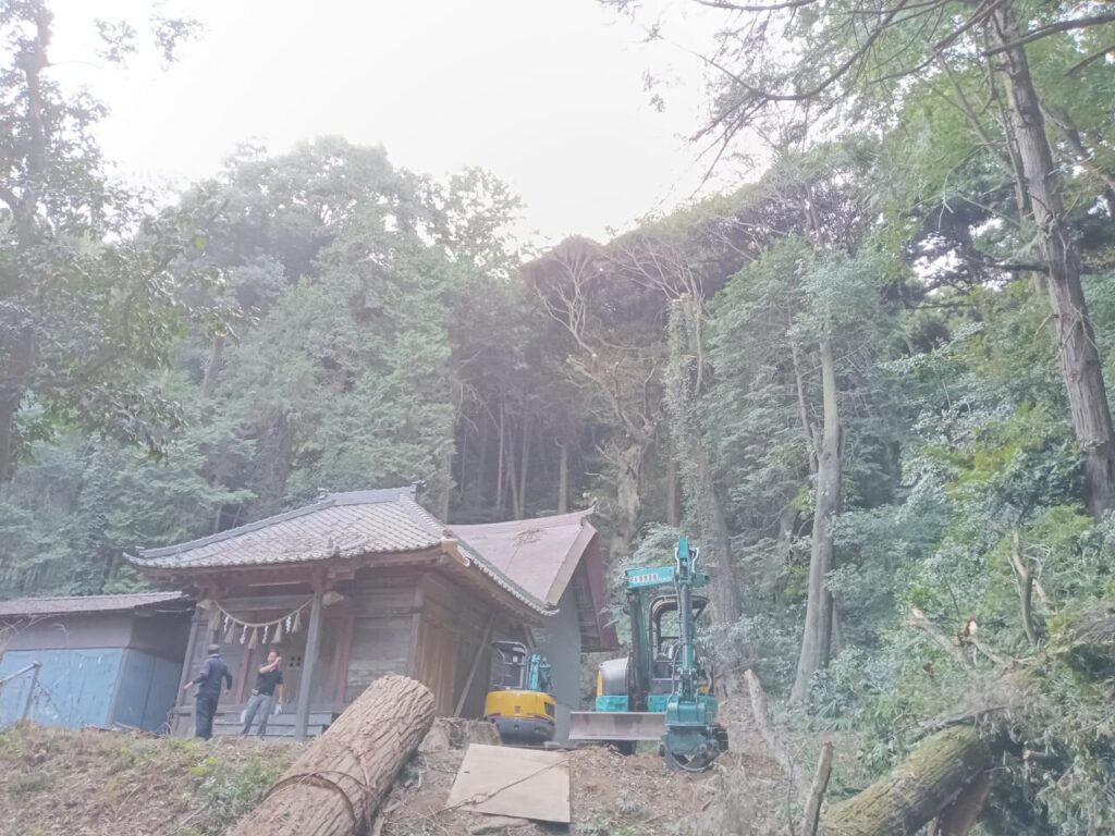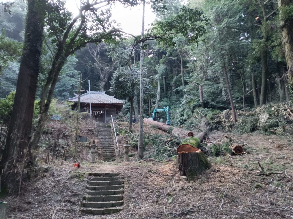 本日も、昨日同様同じ現場でした。結果から言うと、取り敢えず切る事は終わりました。切るだけ切って、それを片付ける迄は時間が無かったので、それは明日やる事に。私は別の現場へ行きますが…。で、今日は昨日の続きで、本殿の上に被っている枝を降ろす作業。何時も思うけど、建物越しに枝を切るのは何時やっても緊張する。今回の建物を建て替えた場合、どうも3000万円掛かるらしいので、落としたらと思うと金◯が縮み上がってしまいそうになる。これだけは慣れないな〜。どうしても緊張してしまう。そして、枯れた杉の木を最後に倒して本日ほ作業は終了しました。最近また、めっちゃ暑いので体力を持っていかれてしまう。