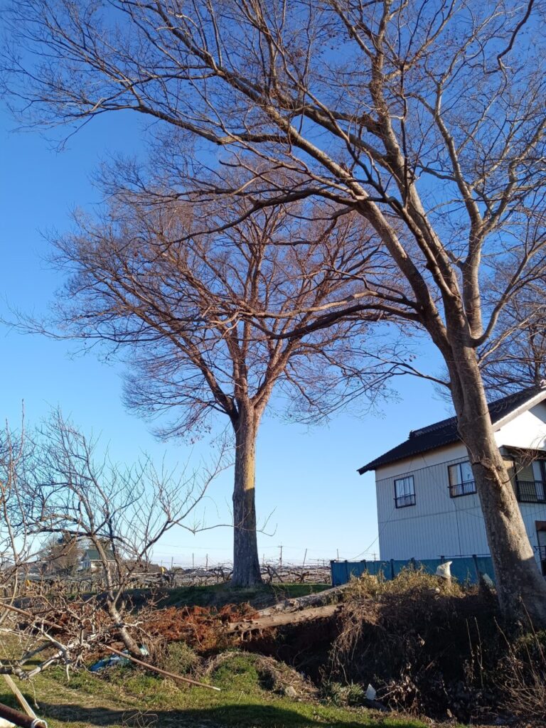 とは言っても、私はその下準備の伐採作業。大きい欅の手前にある欅2本と、その大きい欅の一部の枝落とし。
